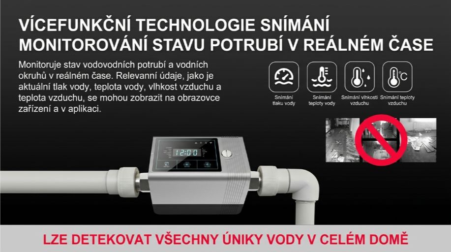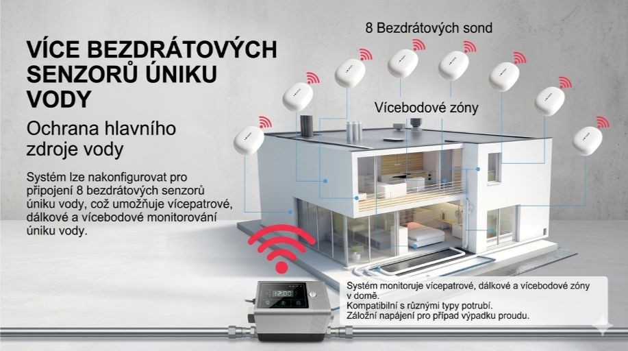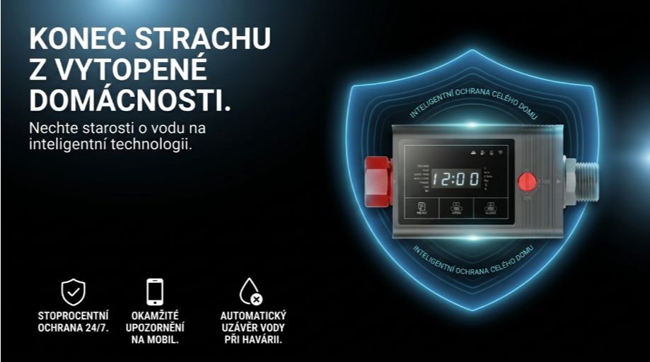 ✅ Plně automatický systém, který okamžitě uzavře hlavní přívod vody